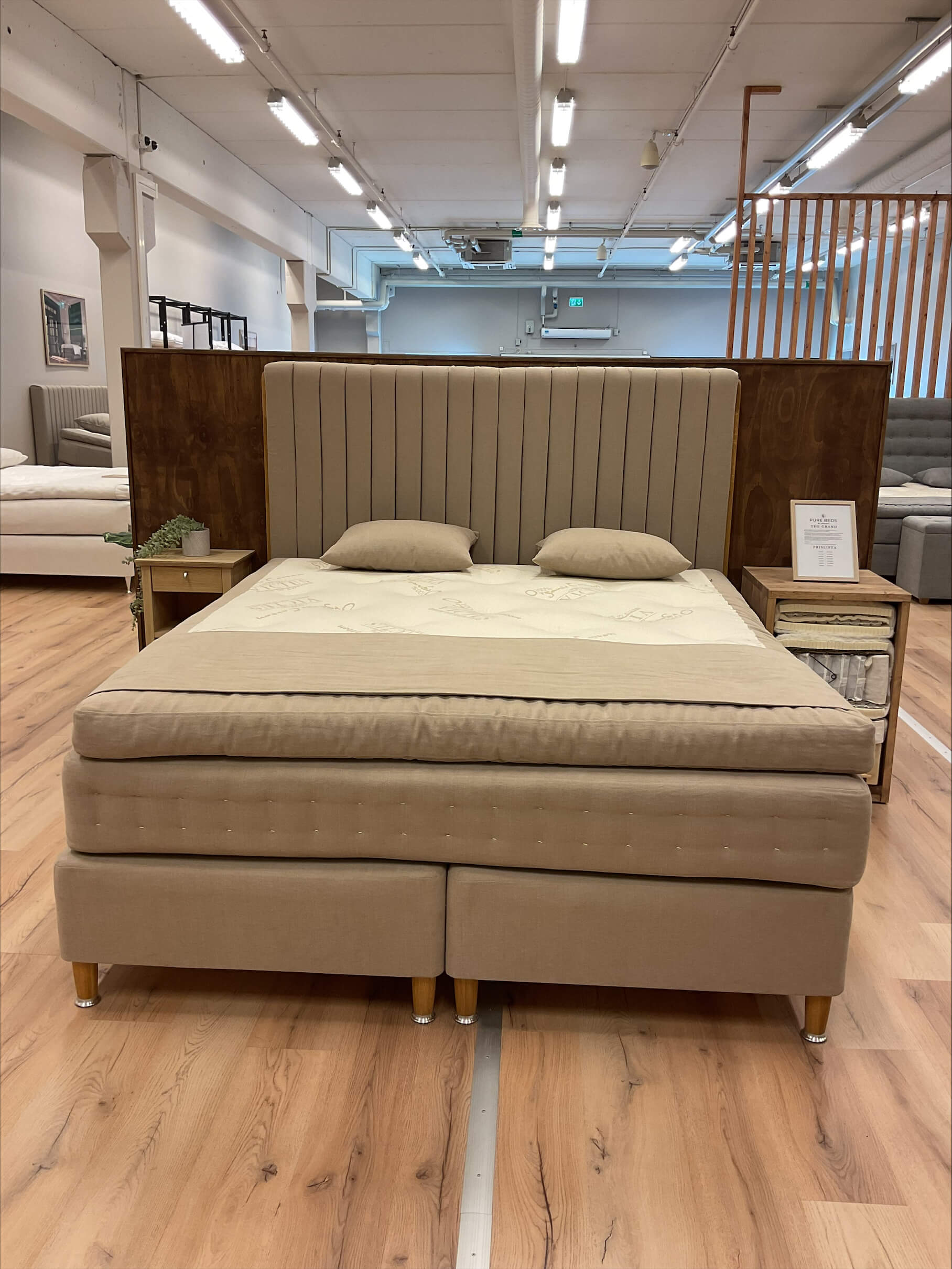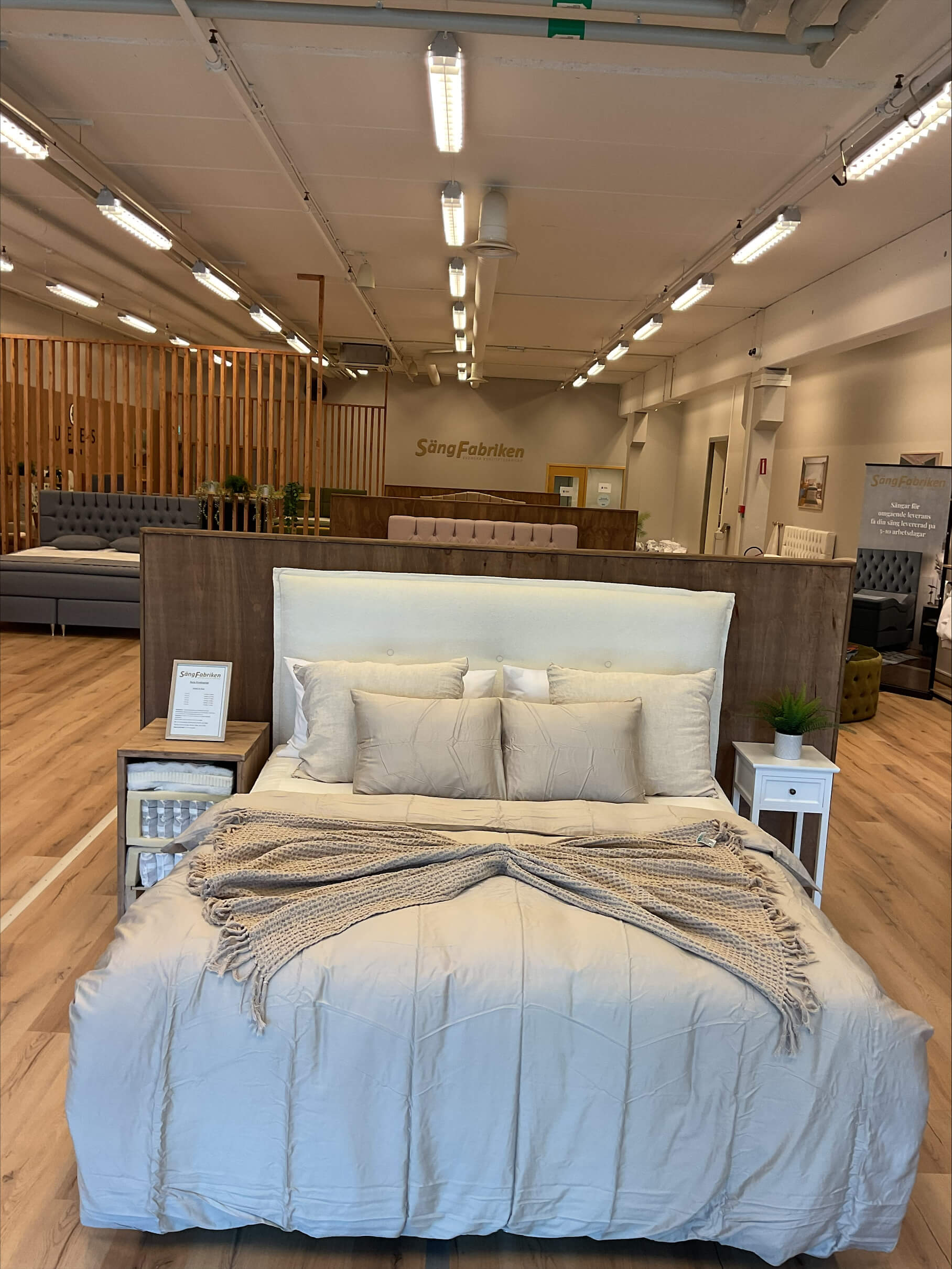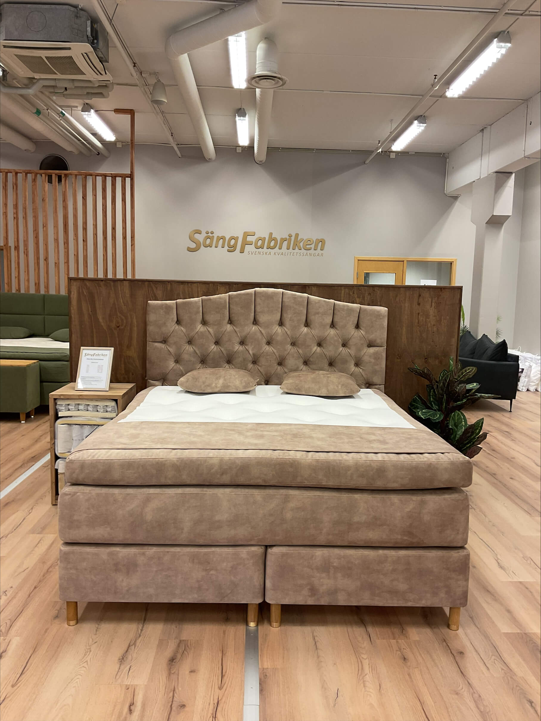 Välkommen till vår butik i Bromma, där vi erbjuder exklusiva premiumsängar till fabrikspriser – helt utan mellanhänder. Varje säng är noggrant handtillverkad med svenskt furu i ramen för maximal hållbarhet och komfort, så att du kan sova gott år efter år.