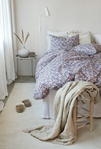 Bäddset bestående av ett örngott och ett påslakan. Bäddsetet har ett tryckt mönster och är tillverkat i mjuk och skön bomullskvalitet. Borganäs bäddset finns i flera olika mönster för både enkel- och dubbelsäng.