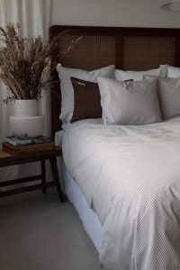 Bäddset bestående av ett örngott och ett påslakan. Bäddsetet har ett tryckt mönster och är tillverkat i mjuk och skön bomullskvalitet. Borganäs bäddset finns i flera olika mönster för både enkel- och dubbelsäng.
