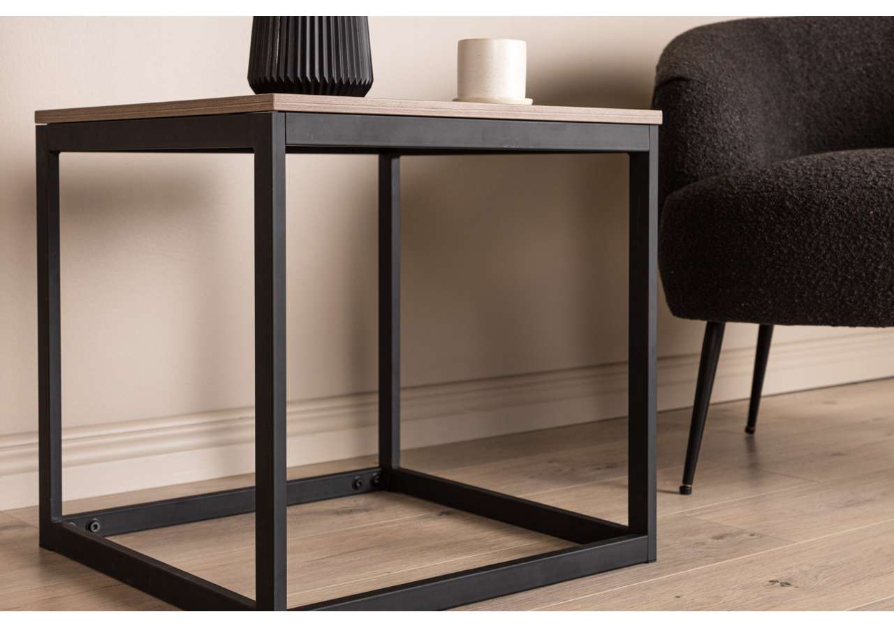 Det här sidobordet klättrar på trendlistorna! Arbor är ett modernt och praktiskt sidobord med en kvadratisk bordsskiva i mörkbrun MDF och stomme i svart stål med industriellt uttryck och rak design. Med sina stilrena former tillför bordet en modern och luftig känsla till rummet och är otroligt användbar både som avlastningsyta, piedestal eller sidobord. Den kvadratiska och nätta storleken gör bordet lätt att placera och flytta runt i hemmet. Perfekt för dig som söker ett schysst avlastningsbord eller snygg inredningsdetalj!