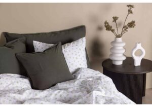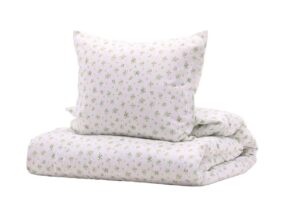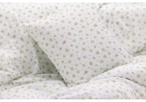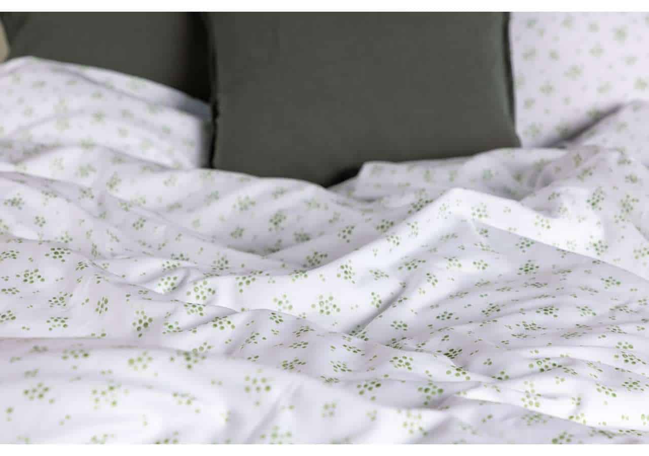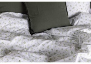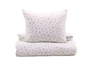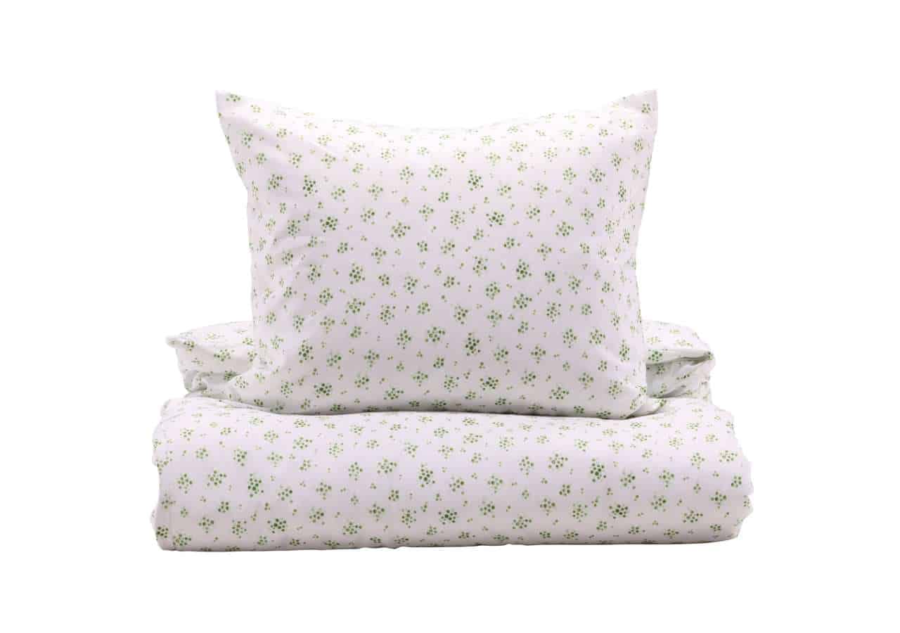 Bädda charmigt och modernt med ett fint bäddsätt från serien Eva! De här sängkläderna i polyester har alla rätt och är lika gosigt att bädda ner sig i som skönt att sova på. Sängkläderna har en vit färgbas och smickrande små blommotiv i grön kulör som skapar ett gulligt och inbjudande intryck. Se våra bilder för inspiration så kan du också bädda som ett proffs med hjälp av de här fina sängkläderna!’