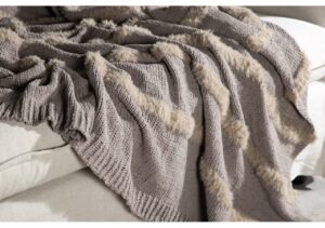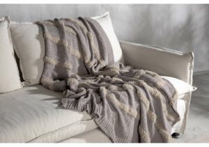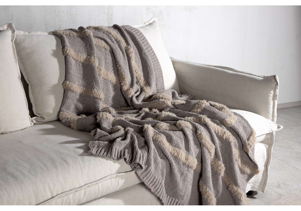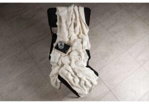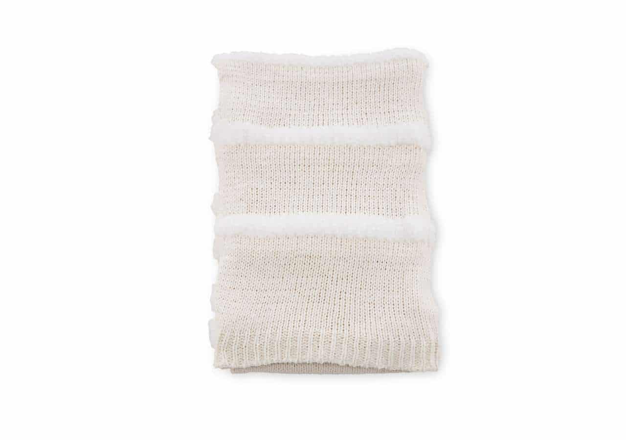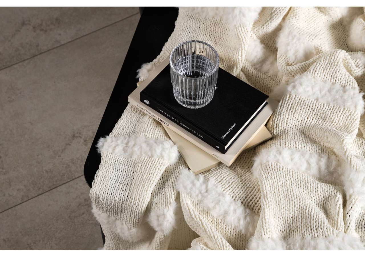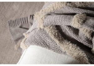 Katleen är pläden som garanterat höjer mysfaktorn i ditt hem! Pläden har ett linjerat mönster av tuftat fuskpäls och tillverkad av polyetser och chenille. Den gräddiga vita kulören smälter in i inredningen och filtens mjuka kvaliteer håller dig varm under hela filmkvällen. Mått 130×170 cm.’