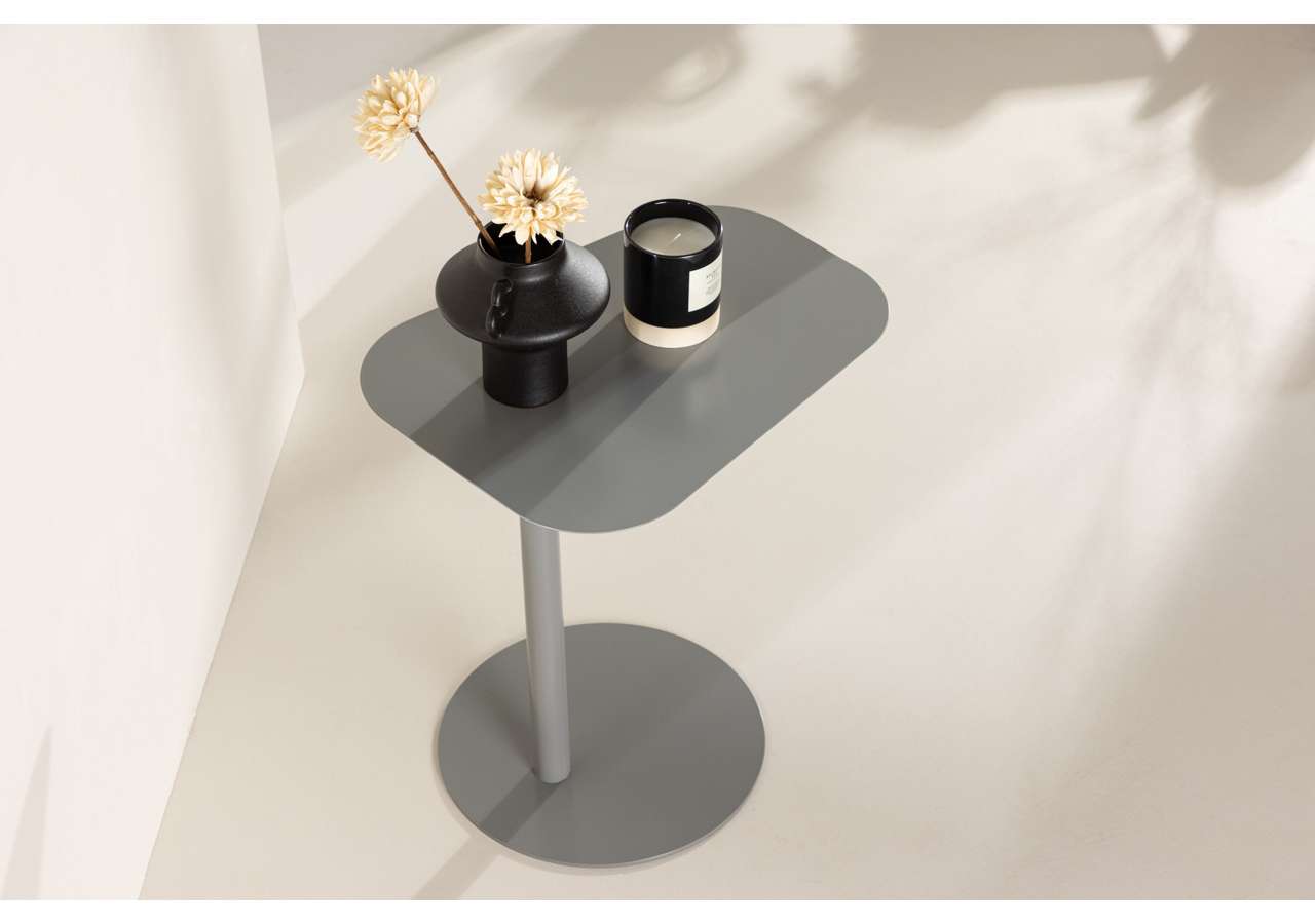 Ta din inredning till nästa nivå med det stilfulla gråa sidobordet San Jose! Inspirerat av skandinavisk design, kombinerar San Jose det bästa av minimalistisk estetik med en slank grå stålfot. Den runda foten ger en solid grund, medan den oregelbundet ovala toppskivan tillför en modern touch som imponerar.