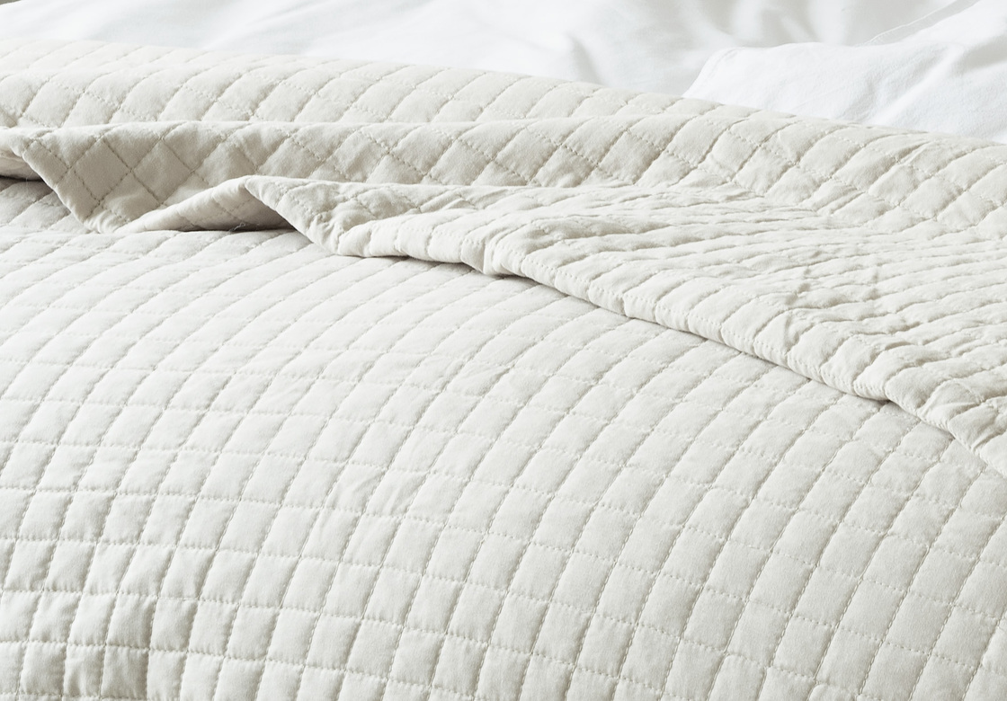 Ett quiltat sängöverkast tillverkat av polyester med en mjuk fyllning. Sängöverkastet har måttet 250×250 cm och passar för dubbelsäng. Finns i färgerna vit, grå och beige. Sängöverkastet finns även i storlek för enkelsäng.