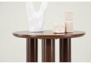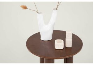 Höj stilnivån i ditt hem med ett trendsäkert sidobord från serien Sotenäs som är lika användbart som trendigt! Sotenäs sidobord är tillverkad i mörkbrun MDF med faner och har tre cylinderformade ben med en rund toppskiva. Bordet är otroligt användbart både som avlastningsyta, piedestal eller sidobord och den nätta storleken gör bordet lätt att placera och flytta runt i hemmet. Ett perfekt tillskott helt enkelt!