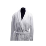 Badrock i tjock och härlig frotté. Badrocken har sjalkrage, två fickor framtill, hängare i nacken och knytskärp i hällor. Badrocken är gjord i one-size för att kunna passa alla. Perfekt både i hemmet eller på spa.